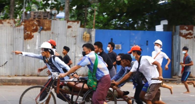 Đưa người biểu tình bị bắn đi cấp cứu ở Yagon ngày 14/3/2021. Photo courtesy: Reuters Hôm 15/3, chính quyền quân sự Myanmar mở rộng “thiết quân luật hoàn toàn” cho các khu vực khác ở thành phố Yangon sau một cuộc biểu tình trên toàn quốc vào cuối tuần khiến ít nhất 50 người thiệt mạng, theo AP, Reuters và Bloomberg.