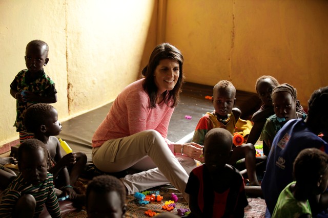 Đại sứ Mỹ tại Liên Hợp Quốc Nikki Haley khi thăm trại tị nạn ở Nam Sudan. Photo Courtesy: Reuters