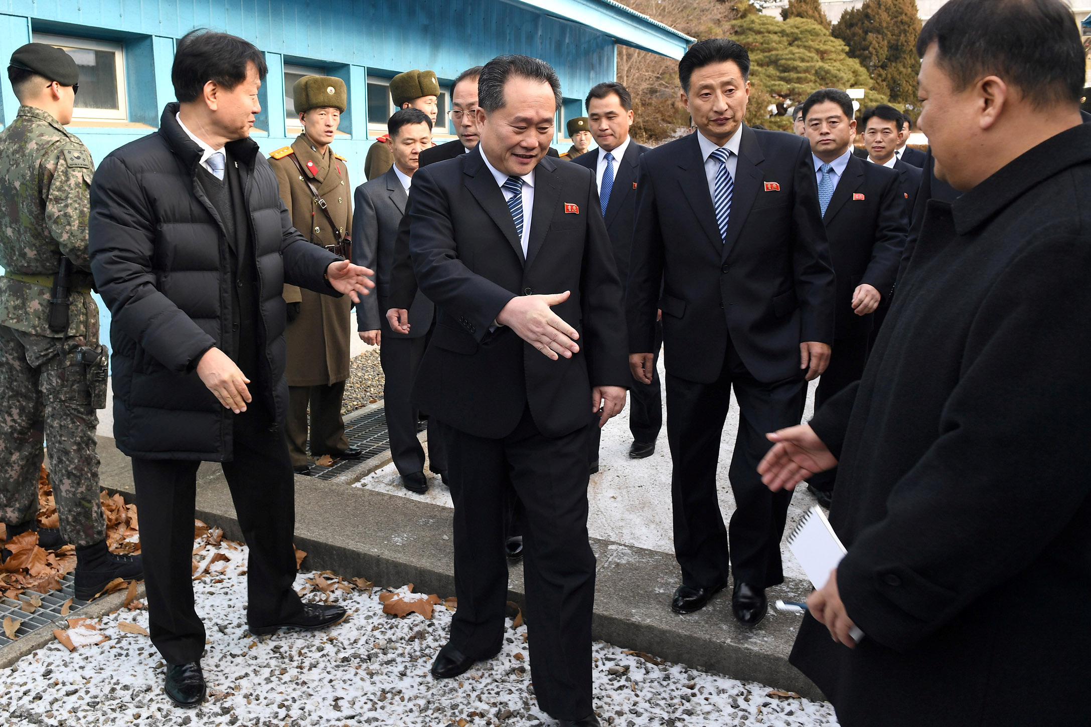 Trưởng đoàn đàm phán Triều Tiên Ri Son-gwon bắt tay một quan chức Hàn Quốc ngày 9.1. 2018. Photo courtesy: Reuters Bộ trưởng ngoại giao từ 20 quốc gia sẽ nhóm họp vào ngày 16-1 (giờ địa phương) tại Thành phố Vancouver, Gia Nã Đại để thảo luận về khủng hoảng trên bán đảo Triều Tiên.