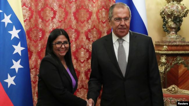 Ngoại trưởng Nga Sergei Lavrov gặp Phó TT Venezuela Delcy Rodriguez ở Moscow, Nga, ngày 21//8/2019. REUTERS/Evgenia Novozhenina. Photo courtesy: Reuters Ngoại Trưởng Nga Sergei Lavrov sẽ đi thăm Venezuela vào ngày thứ Sáu 7/2 tới đây để bày tỏ sự hậu thuẫn dành cho Tổng thống Nicolas Maduro, một nhân vật theo chủ nghĩa xã hội mà Washington muốn thấy bị đẩy ra khỏi vị thế quyền lực.