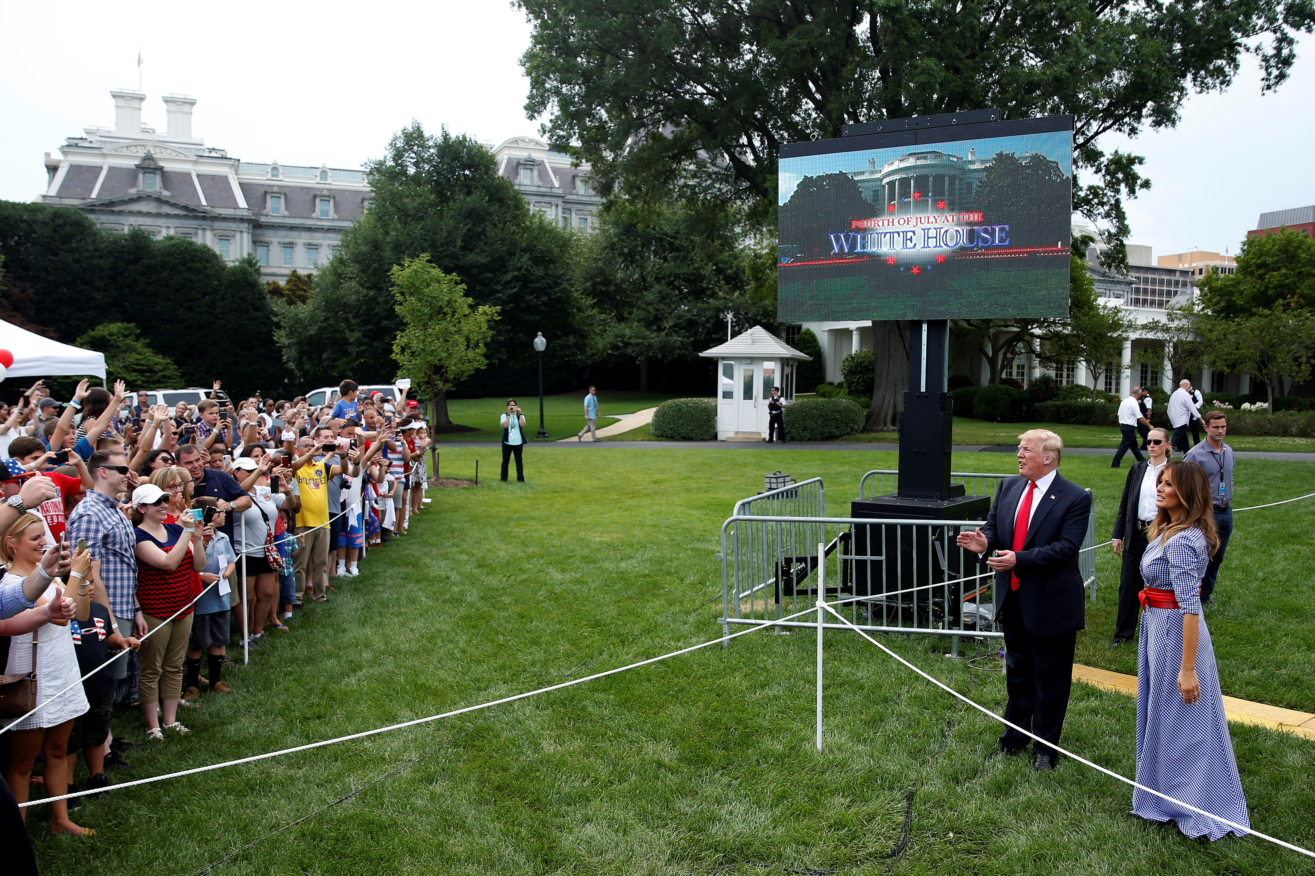 Tại Bạch Ốc, Tổng thống Mỹ Donald Trump tổ chức một buổi dã ngoại với các gia đình quân nhân ở bãi cỏ phía Nam để chờ đón màn trình diễn pháo hoa dự kiến sẽ thắp sáng bầu trời phía trên quảng trường quốc gia National Mall.
