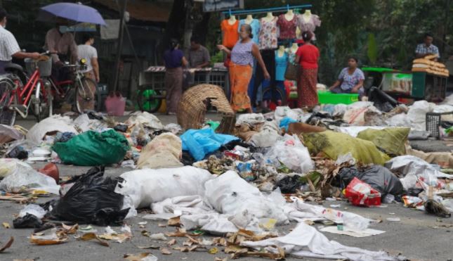 Rác rưởi chất đống ở thành phố Yangon, Myanmar, 30/3/2021. Photo courtesy: Reuters Rác thải chất đống trên đường phố ở thành phố chính của Myanmar hôm thứ Ba 30/3 sau khi các nhà hoạt động phát động “cuộc chống đối bằng rác” để phản đối sự cai trị của quân đội. Trong khi đó, số người biểu tình ủng hộ dân chủ bị lực lượng an ninh giết chết kể từ cuộc đảo chính hôm 1/2 đã tăng lên hơn 510 người.