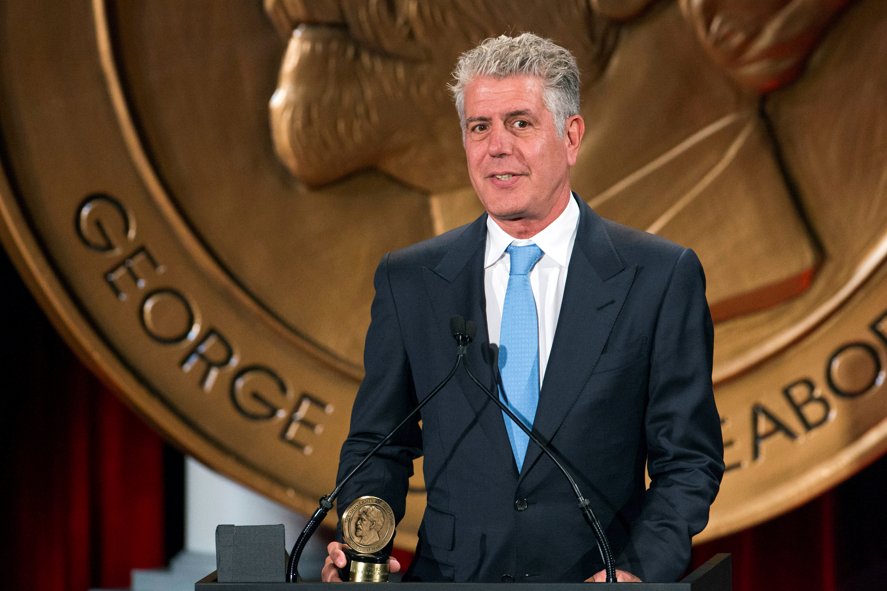 Ông Anthoy Bourdain được trao giải thưởng Peabody hồi năm 2014. Photo Courtesy: Reuters