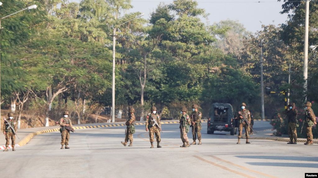 Quân đội Myanmar thực hiện đảo chính sáng ngày 1/2/2021. Photo courtesy: Reuters