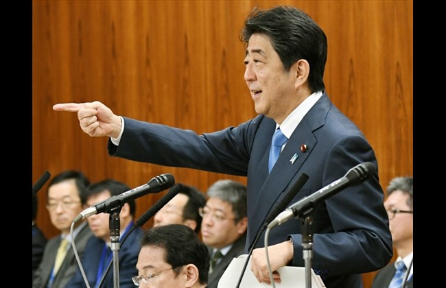 Thủ tướng Nhật Shizo Abe phát buổi trong cuộc họp diễn ra ngày 13.4. Photo Courtesy: Reuters