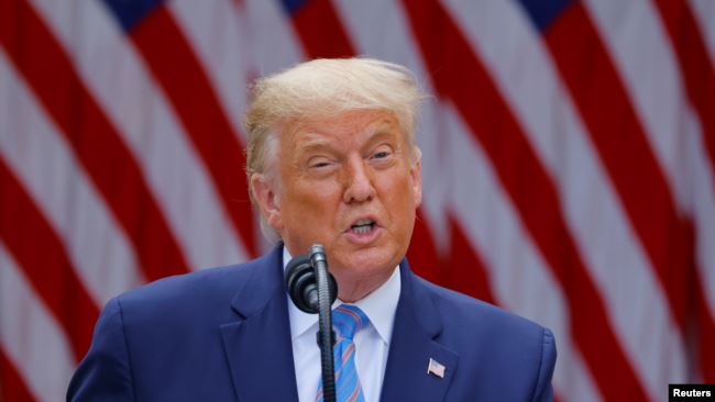 Tổng thống Donald Trump nói về kế hoạch xét nghiệm COVID-19 của chính phủ tại Vườn Hồng Toà Bạch Ốc ngày 28/9/2020. Photo courtesy: Reuters