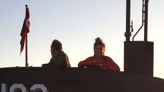 Nữ nhà báo Kim Wall trên tàu ngầm của ông Peter Madsen hôm 10.8, và đó là lần cuối cùng người ta nhìn thấy cô. Photo courtesy: Ritzaufoto