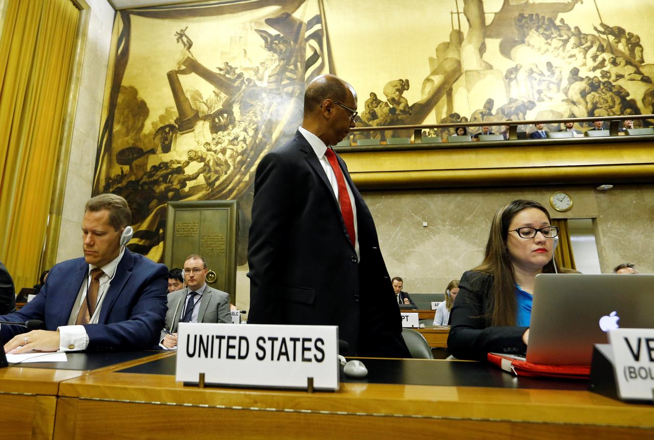 Đại sứ Giải trừ Quân bị Mỹ Robert Wood đứng lên bỏ họp để tẩy chay Venezuela. Photo Courtesy: Reuters