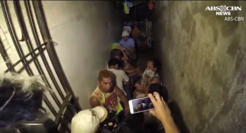 Phương tiện truyền thông quay lại cảnh các tù nhân được phát hiện trong nhà giam sau kệ sách ở đồn cảnh sát tại Manila. Photo Courtesy: ABS-CBN