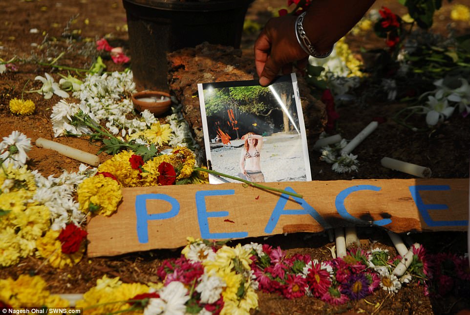 Hoa tưởng niệm giành cho Danielle McLaughlin, 28 tuổi ở southern Goa. Photo Courtesy: Nagesh Ohal/SWNS.com