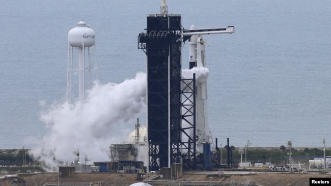 Tên lửa Falcon 9 của công ty SpaceX trên giàn phóng ở Trung tâm Không gian Kennedy của NASA tại Cape Canaveral, Florida, ngày 27/5/2020. Photo courtesy: Reuters SpaceX, công ty hoạt động trong lĩnh vực hàng không vũ trụ của doanh nhân ty phú Elon Musk, buộc phải dời lịch dự trù đưa hai phi hành gia người Mỹ vào quỹ đạo chiều ngày 27/5 từ bang Florida (Hoa Kỳ) do thời tiết xấu. Đây được xem là chuyến bay vào không gian đầu tiên của các phi hành gia NASA từ lãnh thổ Mỹ trong vòng 9 năm.