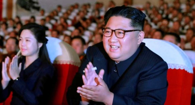 Bà Ri và ông Kim mỉm cười khi dự buổi hòa nhạc tại Nhà hát Nghệ thuật Mansudae ở thủ đô Bình Nhưỡng.