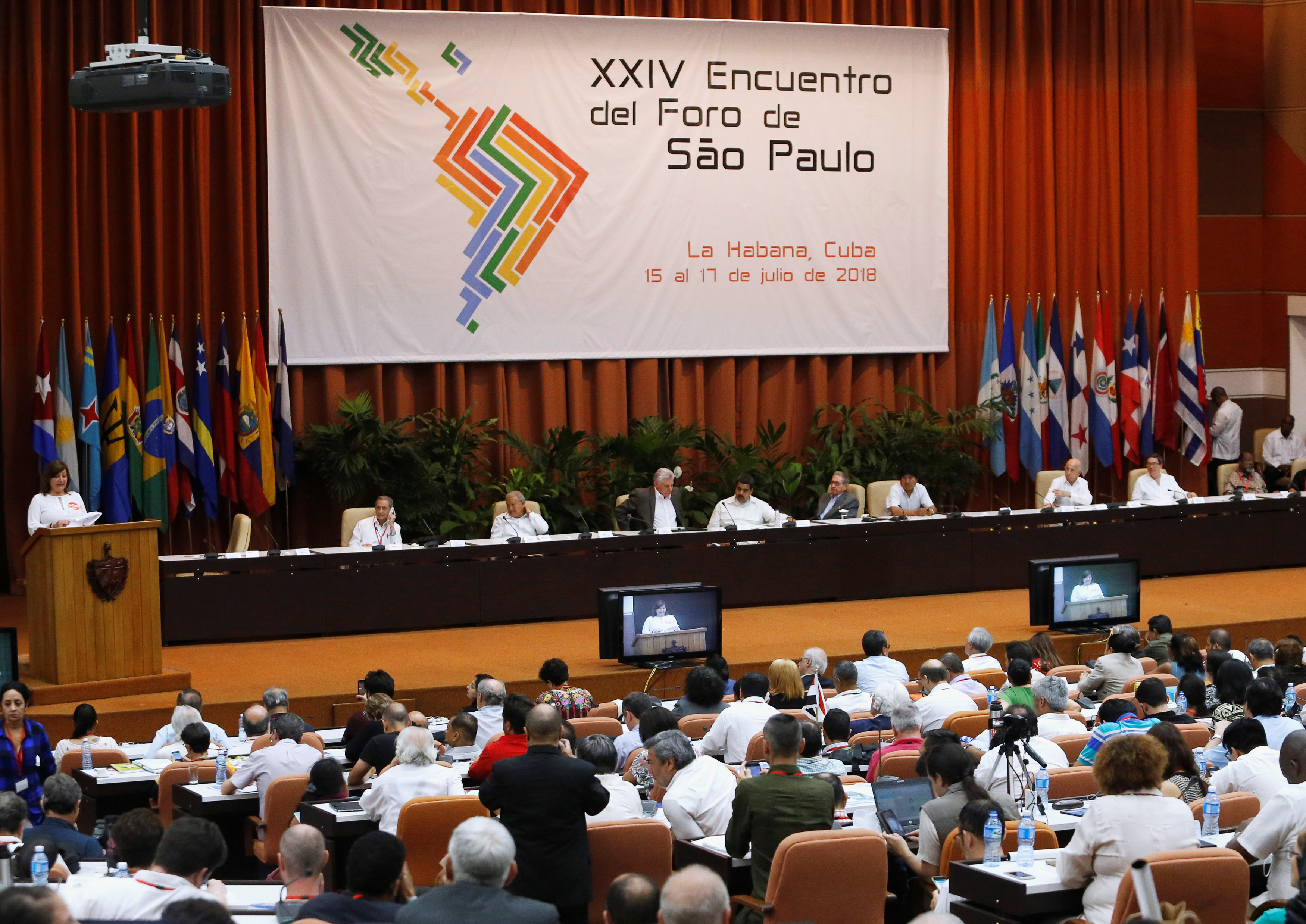 Cựu chủ tịch Raul Castro, đương kim Chủ tịch Miguel Diaz-Canel, Tổng thống Venezuela Nicolas Maduro và Tổng thống Bolivia Evo Morales trong một phiên họp ở Sao Paulo Forum, Havana, Cuba, hôm 17.7.2018. Photo courtesy: Stringer/Reuters Các đại biểu quốc hội Cuba hôm 22.7 đã thông qua dự thảo Hiến pháp mới, theo đó công nhận quyền sở hữu tài sản tư nhân bên cạnh các thay đổi về kinh tế, chính trị và xã hội khác nhằm hiện đại hóa đất nước.