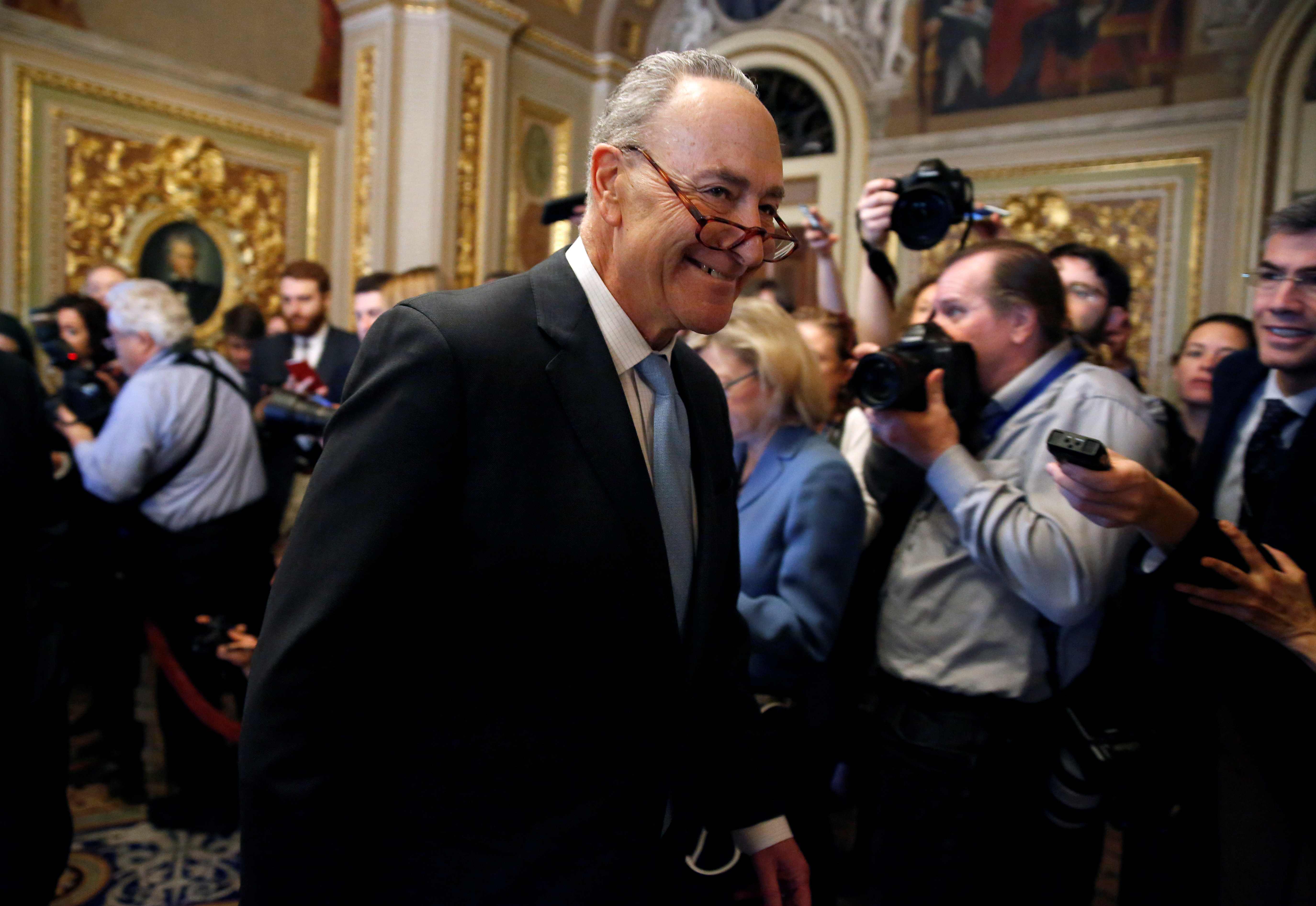Lãnh đạo phe Dân chủ tại Thượng viện Chuck Schumer đến phiên họp hôm 22.1.2018. Photo Courtesy: Reuters Sau 3 ngày đóng cửa, các nghị sĩ ở cả Thượng viện và Hạ viện Mỹ ngày 22.1 đã đạt được thỏa thuận để mở cửa chính phủ trở lại với việc đảng Dân chủ buộc đảng Cộng hòa của Tổng thống Donald Trump phải thảo luận về vấn đề người nhập cư trong thời gian tới.