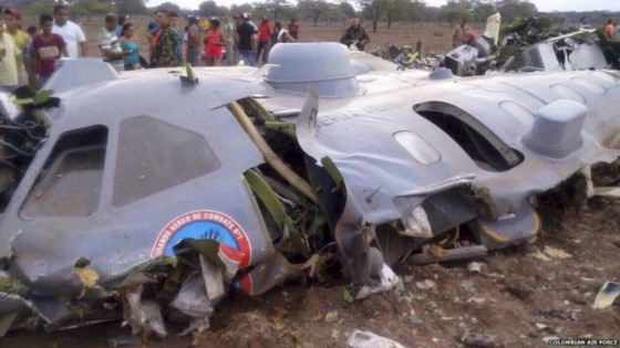 Hiện trường vụ tai nạn máy bay. Photo Courtesy: BBC Một máy bay quân sự cỡ nhỏ đã đâm vào một ngọn đồi ở miền trung Colombia, khiến ít nhất 8 người thiệt mạng hôm 1.5.