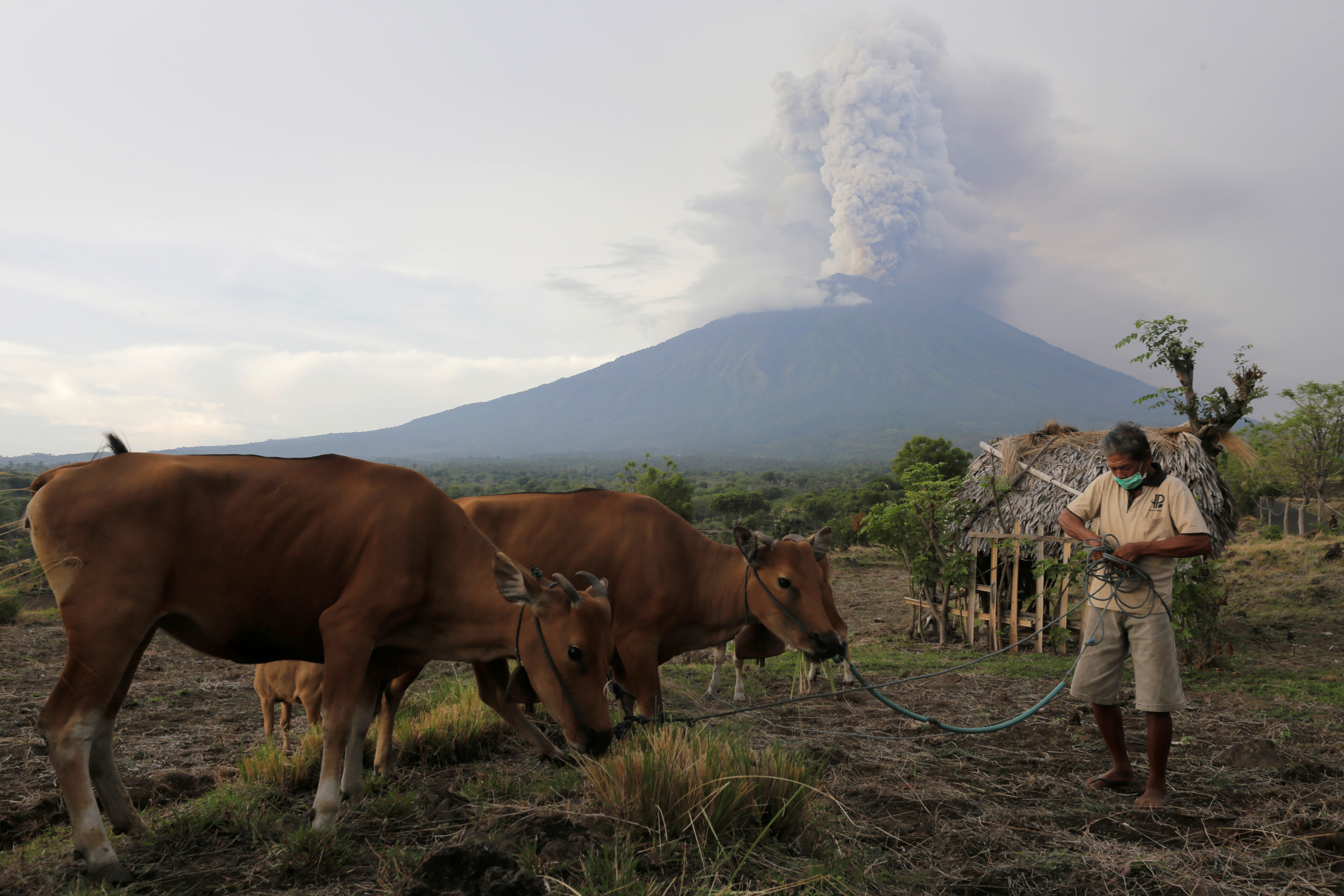 Núi lửa Agung phun cột tro bụi ngày 27.11. Photo Courtesy: Reuters