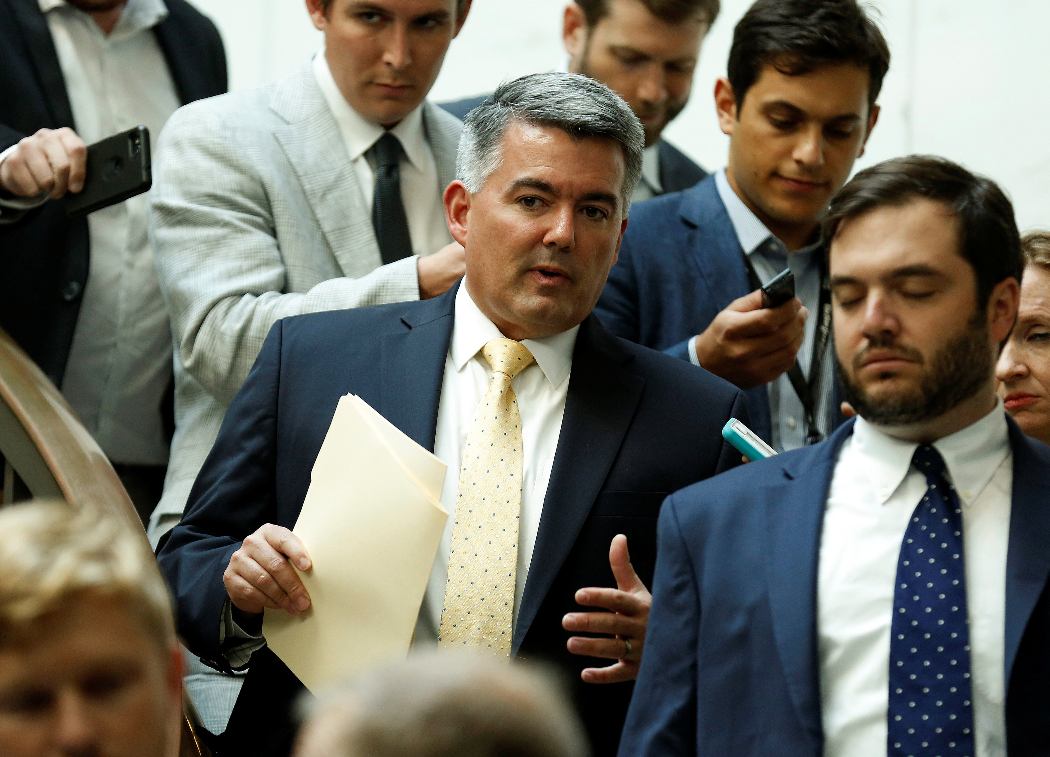Thượng nghị sĩ Cory Gardner (thứ hai từ phải sang, phía trước) tại một cuộc họp ở Washington hôm 22.8.2018. Photo courtesy: Reuters