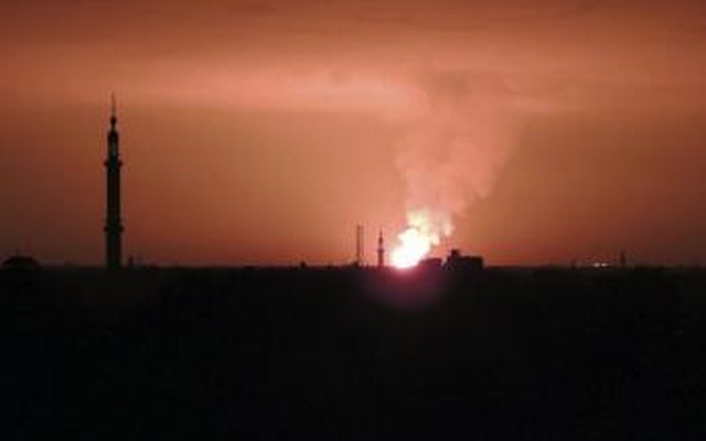 Cháy gần sân bay quốc tế Damascus, Syria được ghi nhận vào sáng sớm 27-4 (giờ địa phương). Photo Courtesy: bdnews24.com Truyền thông Syria dẫn một nguồn tin quân sự ngày 27.4 cho biết Israel đã dội tên lửa vào một vị trí gần sân bay quốc tế Damascus ở Syria, gây thiệt hại về vật chất.