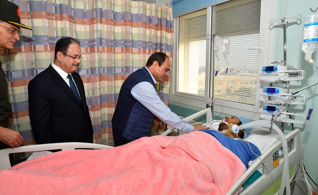 Tổng thống Abdel Fattah al Sisi thăm nạn nhân một vụ tấn công hồi đầu tháng 11-2017. Photo Courtesy: Reuters
