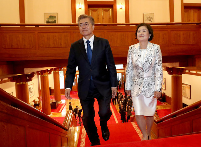 Ứng viên tranh cử Tổng thống Hàn Quốc Moon Jae In và phu nhân tại Nhà xanh Tổng thống. Photo Courtesy: Reuters Ứng viên đảng Dân chủ theo đường lối tự do Moon Jae-in được bầu làm tổng thống Hàn Quốc hôm 10.5 và sẽ bắt đầu nhiệm kỳ 5 năm ngay sau khi được cơ quan giám sát bầu cử xác nhận chiến thắng.