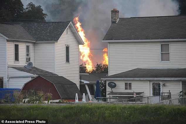 Lửa cháy trong vụ trật bánh xe lửa ở Pennsylvania. Photo courtesy: Steve Bittner/The Cumberland Times-News via AP Đoàn tàu chở hóa chất độc hại trật khỏi đường ray tại tiểu bang Pennsylvania, Mỹ, khiến nhà chức trách phải lập tức sơ tán toàn bộ thị trấn nơi đoàn tàu gặp tai nạn.