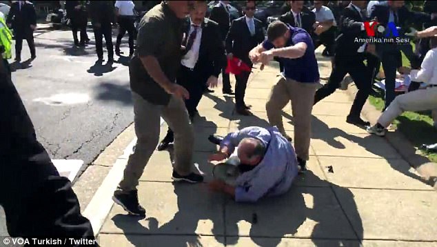 Bốn thành viên trong đội bảo vệ Tổng thống Erdogan đang bị lệnh bắt giữ vì bị cáo buộc tham gia một vụ xô xát tại Mỹ hồi tháng trước. Photo courtesy: D.C.Poilce