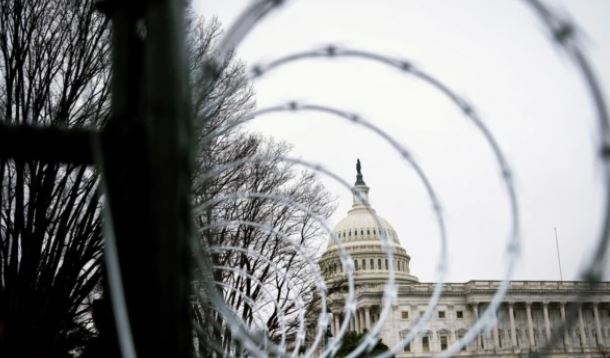 Hàng rào kẽm gai và an ninh bao quanh Điện Capitol ở Washington, ngày 26/1/2021. Photo courtesy: Reuters