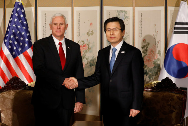 Thủ tướng Hwang Kyo-ahn (phải) đón tiếp Phó Tổng thống Mỹ tại Seoul hôm 17.4.2017. Photo Courtesy: Reuters