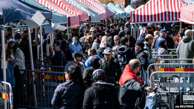 Người dân Thụy Điển mua rau tại chợ Mollevangstorget, ở Malmo, Thụy Diển ngày 25/4/2020. Photo courtesy: Reuters