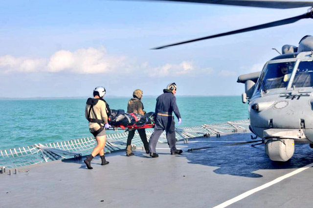 Trước đó, Nhiều máy bay, thợ lặn và tàu Mỹ, Tân Gia Ba, Mã Lai, Nam Dương và Úc nỗ lực tìm kiếm, cứu hộ những thủy thủ mất tích trong phạm vi 5,400 km2 tại khu vực phía đông Eo biển Malacca và Tân Gia Ba trong 80 giờ.