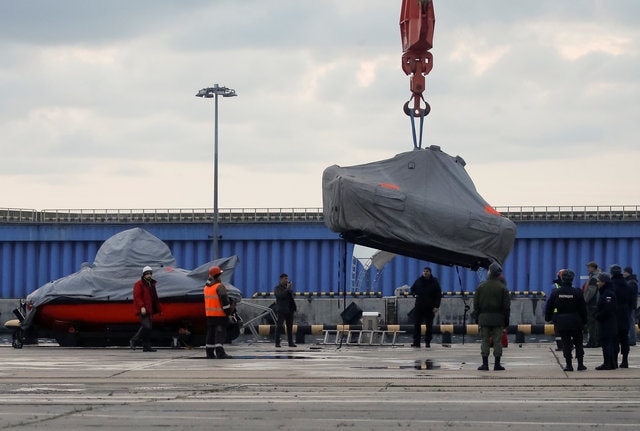 Một mảnh vỡ của máy bay Tu-154 được trục vớt tối 26.12.2016. Photo Courtesy: Reuters