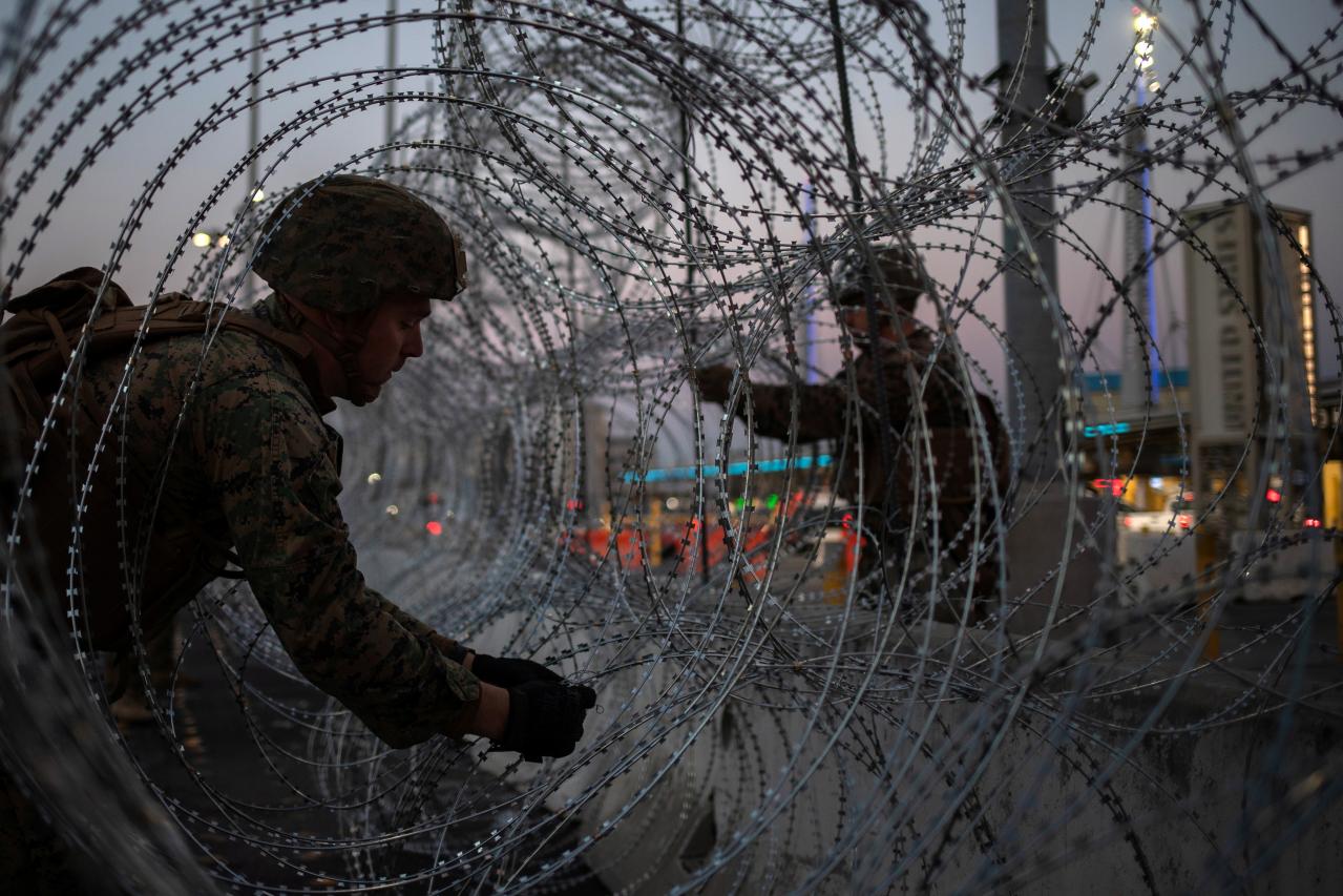 Thủy quân lục chiến Hoa Kỳ đang đặt những vòng thép dọc cửa khẩu biên giới Cảng San Ysidro từ Tijuana, Mexico ngày 20 tháng 11 năm 2018. REUTERS/Adrees Latif Tổng thống Mỹ cho biết ông từ chối việc thỏa hiệp với quốc hội cho kế hoạch xây dựng bức tường ở biên giới với Mexico, tiếp tục dọa sẽ ban bố tình trạng khẩn cấp quốc gia.
