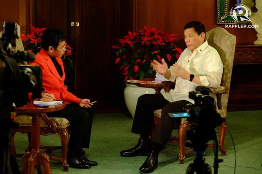Tổng thống Rodrigo Duterte trả lời phỏng vấn trang Rappler hôm 29.12. Photo Courtesy: RAPPLER