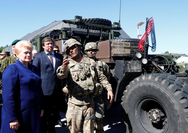 Nữ tổng thống Litva Grybauskaite thăm binh lính Mỹ ỡ căn cứ ở gần Siauliai, Lithuania hôm 20.7.2017. Photo Courtesy: Reuters Ngày 10.8, cựu Tổng thống Litva, nghị sỹ Nghị viện châu Âu ông Rolandas Paksas đã lên tiếng cáo buộc Tổng thống Litva đương nhiệm Dalia Grybauskaite đang phục vụ lợi ích của Mỹ.