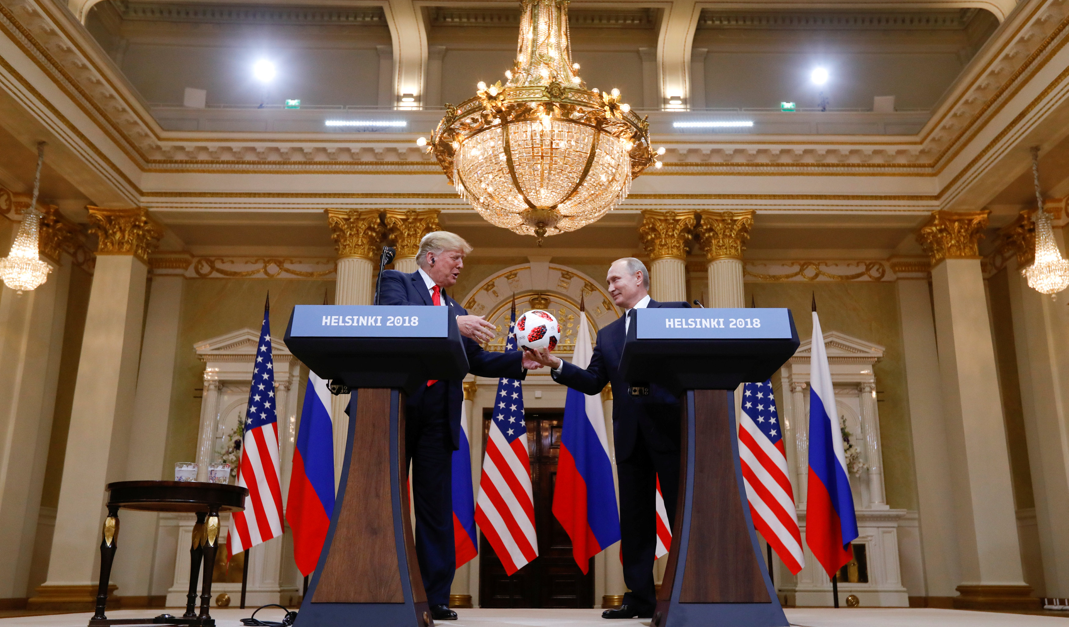 Theo cây bút Brian Barrett của trang tin Wired, trong suốt 45 phút của cuộc họp báo tại hội nghị thượng đỉnh Nga – Mỹ hôm qua 16.7 tại Helsinki, Phần Lan, Tổng thống Donald Trump đã ở bên cạnh người đồng cấp Nga Vladimir Putin, cả theo nghĩa đen lẫn nghĩa bóng. Cuộc gặp giữa hai nhà lãnh đạo diễn ra một ngày sau khi Nga hoàn thành vai trò nước chủ nhà đăng cai World Cup 2018 – một trong những sự kiện thể thao lớn nhất thế giới.
