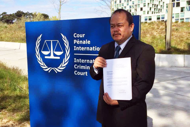 Theo báo New York Times (Mỹ), đơn kiện dài 77 trang do Luật sư Jude Josue Sabio đứng đơn trình lên Tòa Hình sự quốc tế (ICC) tại The Hague ngày 24.4.