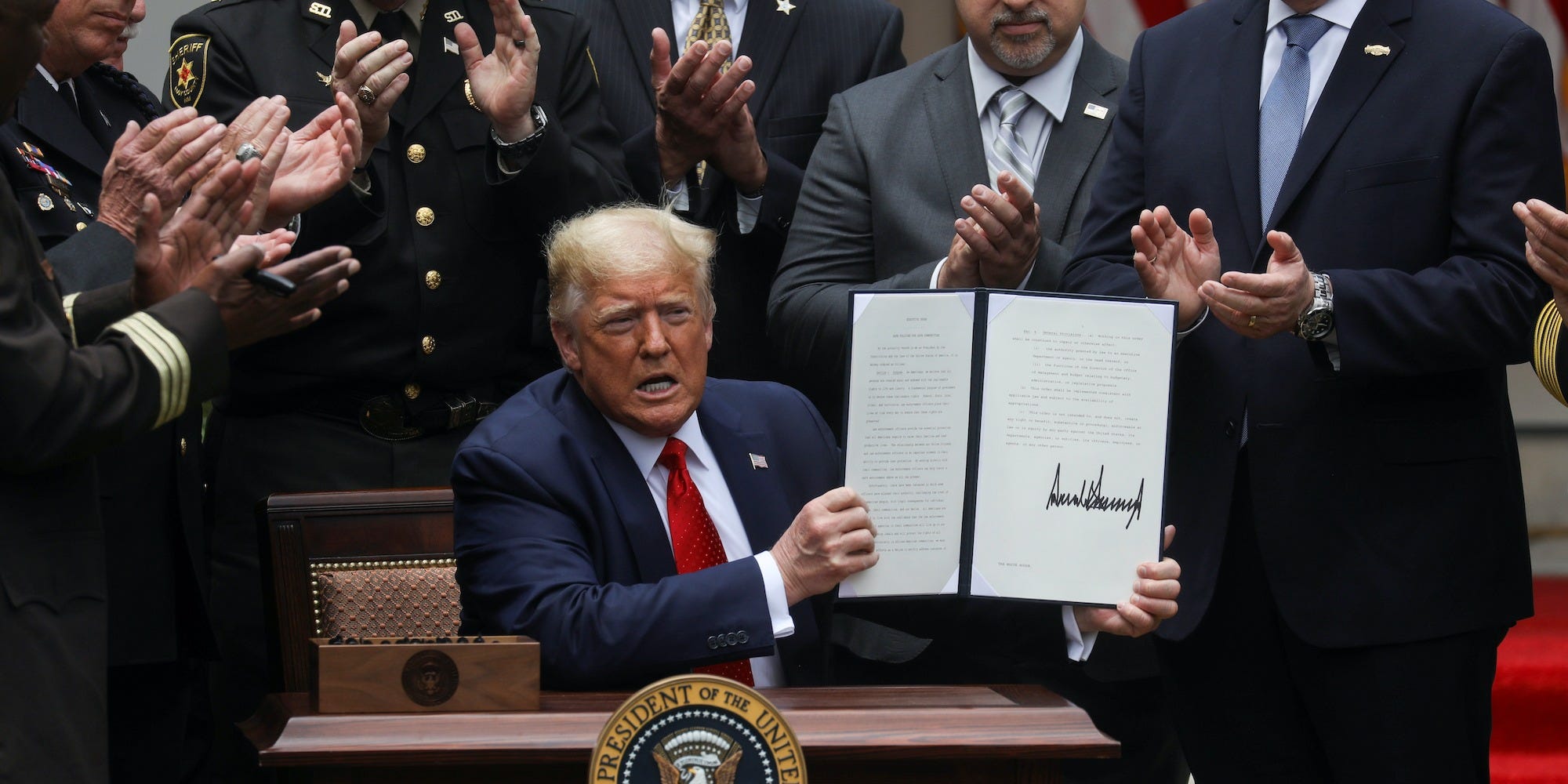 “Người Mỹ muốn luật pháp và trật tự, họ đòi hỏi luật pháp và trật tự,” ông Trump nói trrong một buổi lễ tại Vườn Hồng Tòa Bạch Ốc trước khi ký sắc lệnh.