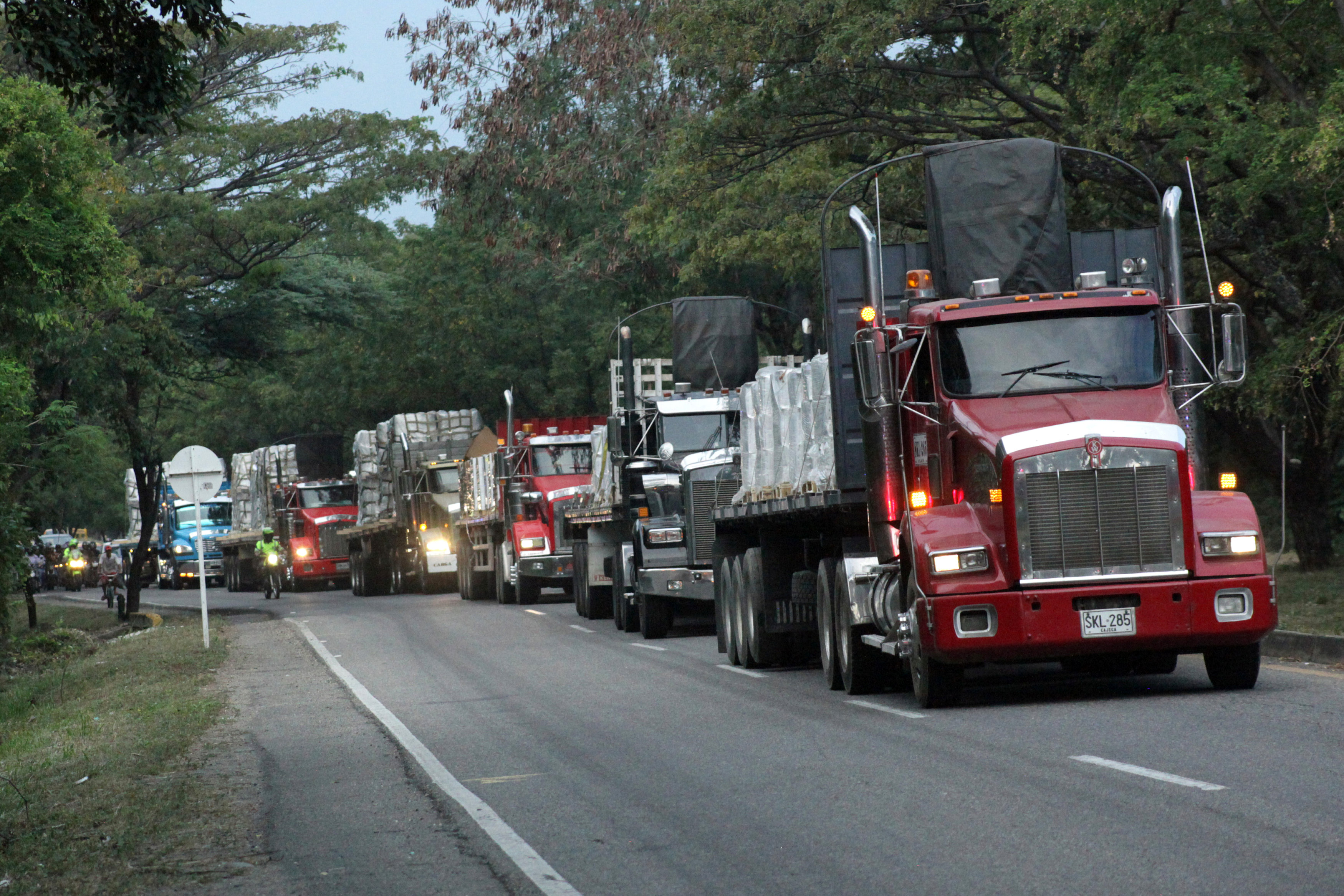 Đoàn xe chở hàng viện trợ Venezuela hôm 16.2 tới thành phố Cucuta, Colombia nằm ở biên giới hai nước. Photo Courtesy: Reuters