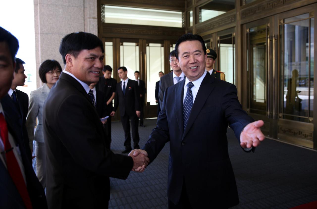 Chủ tịch Interpol Mạnh Hoành Vĩ (phải) hiện đang bị giữ tại Trung Quốc. Photo Courtesy: Reuters Trong một tuyên bố chính thức ngày 8.10 Bộ Công an Trung Quốc cho biết giám đốc Interpol Meng Hongwei (Mạnh Hoằng Vĩ), người vừa từ chức ngày 7.10, bị bắt giữ vì cáo buộc nhận hối lộ và vụ việc đang trong quá trình điều tra.