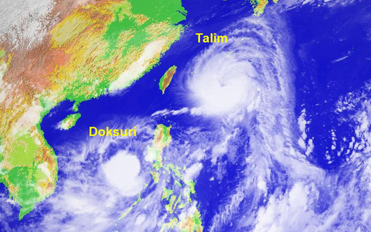 Trong khi đó, cơn bão Doksuri gần đây được hình thành ở phía Tây Phi Luật Tân, đang hướng đến tỉnh Hải Nam và được dự báo đổ bộ vào Trung Quốc cùng thời điểm với bão Talim. Southern Metropolis Daily dẫn lời các nhà chức trách tỉnh Quảng Đông nhận định nếu nó mạnh lên và cùng với Talim tạo thành cơn bão kép, tỉnh sẽ phải chịu thiệt hại nặng nề.