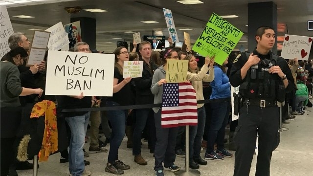 Biểu tình phản đối vụ sắc lệnh nhập cư vào ngày 2.6.2017. Photo Courtesy: Reuters Chính quyền Tổng thống Donald Trump hôm 1-6 yêu cầu Tòa án Tối cao khôi phục lệnh cấm người nhập cư từ 6 quốc gia có phần đông người Hồi giáo sinh sống vào Mỹ.