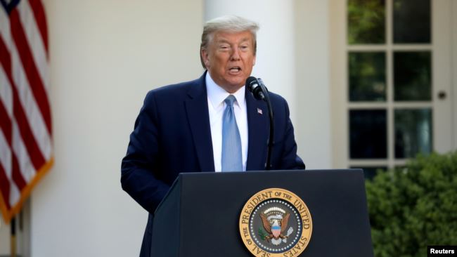 Tổng thống Donald Trump phát biểu tại buổi họp báo hôm 15/04/2020. Photo courtesy: Reuters