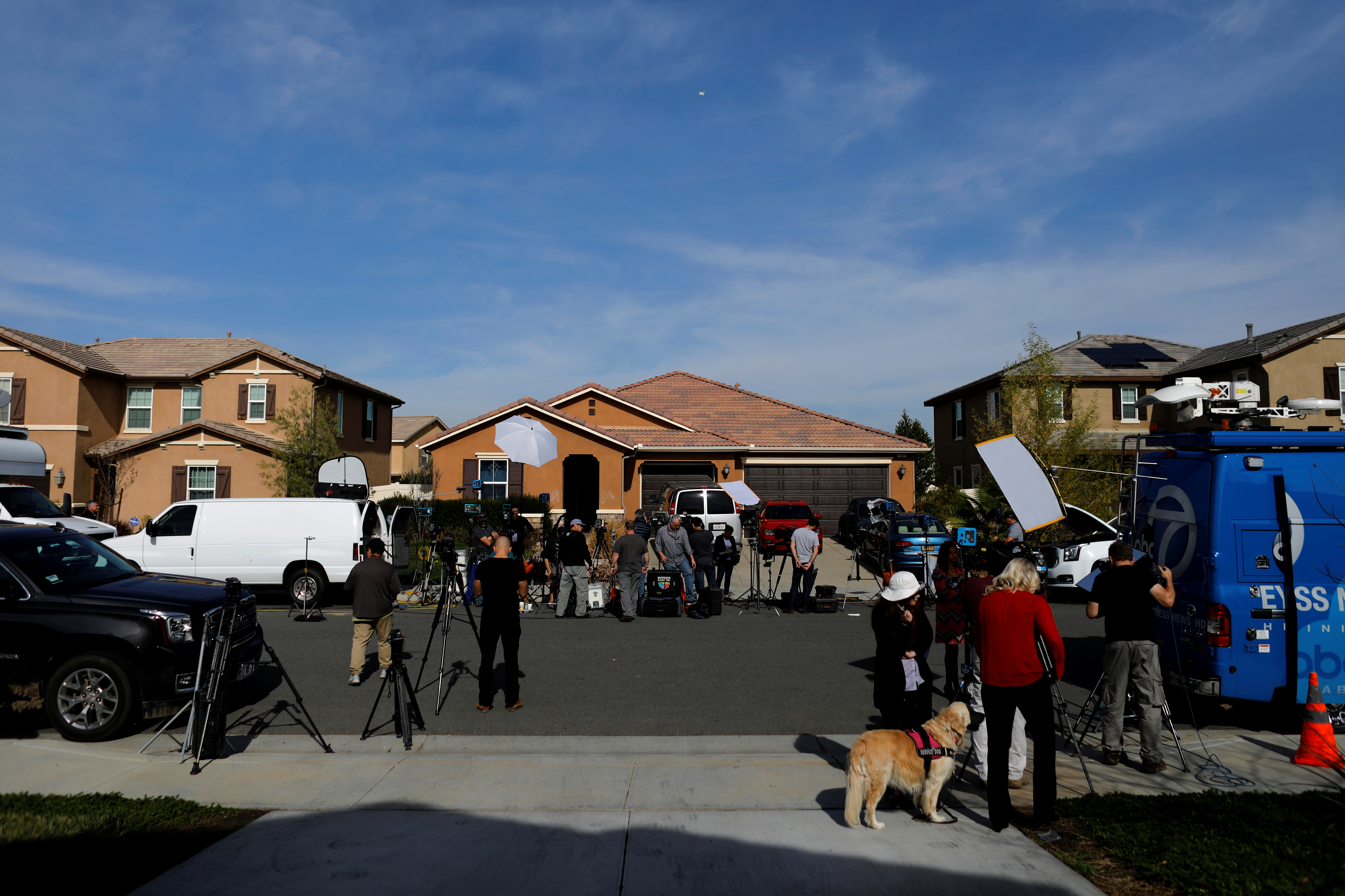 Báo chí đứng trước cửa nhà Turpin vào ngày 15.1.2018. Photo Courtesy: Reuters