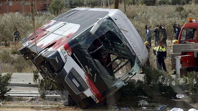 Chiếc xe tải bị lật tại hiện trường vụ tai nạn. Photo Courtesy: Al-Arabiya Ngày 14.2, một xe tải chở người di cư châu Phi đã bất ngờ bị lật khi đang di chuyển đến thành phố Bani Walid của Libya, khiến ít nhất 19 người thiệt mạng và gần 80 người bị thương. Nguyên nhân tai nạn chưa được xác định.