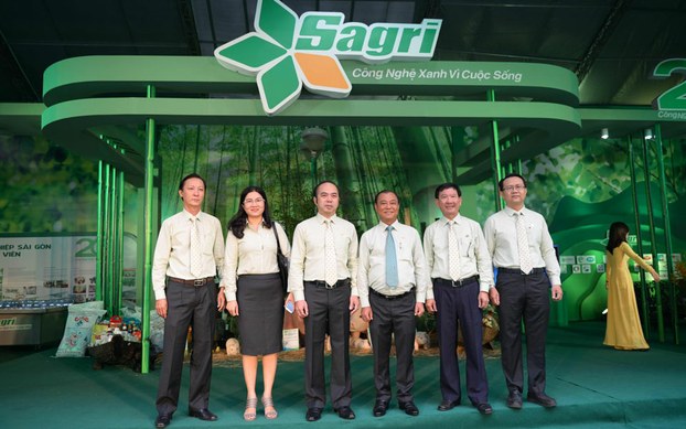 Tổng giám đốc Tổng Công Ty Nông Nghiệp Sài Gòn- Sagri, Lê Tấn Hùng (thư ba từ phải sang) tại một cuộc triển lãm của công ty Sagri. Photo courtesy: sagri.com.vn