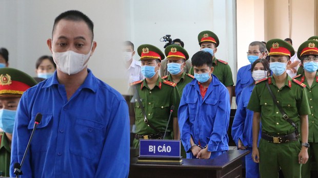 Nguyễn Văn Út (trái) và đồng phạm tại phiên xét xử. Photo courtesy: RFA