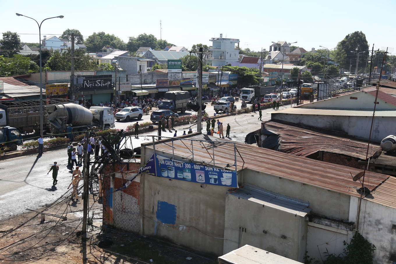 Toàn cảnh hiện trường bên Quốc lộ 13 nhìn từ trên cao. Hình: VnExpress