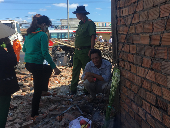 Người chồng thẫn thờ khi biết tin vợ và hai con đã bị thiêu sống trong nhà. Photo Courtesy: NLĐ