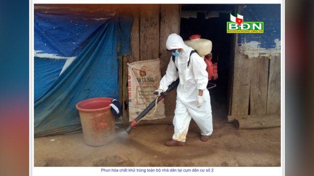 Phun hóa chất khử trùng toàn bộ nhà dân. Photo courtesy: daknong.gov.vn Sở Y tế tỉnh Đắk Nông vào ngày 23/6 thông báo toàn tỉnh ghi nhận có 12 ca dương tính với bệnh bạch hầu tại 3 ổ dịch, tỉnh đã cách ly 800 người để theo dõi và điều trị dự phòng cho hơn 1200 người.