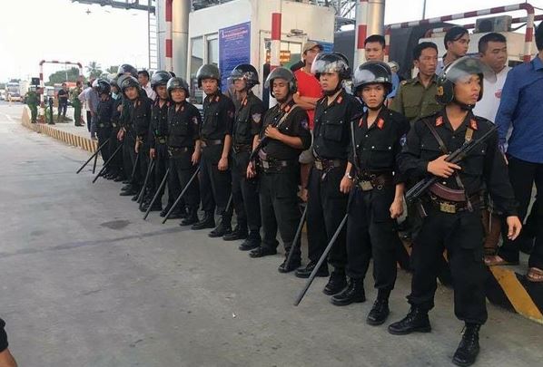 Cảnh sát cơ động được huy động đến trạm BOT Cai Lậy vào ngày 30/11/2017. Photo courtesy: Facebook Bạn hữu đường xa